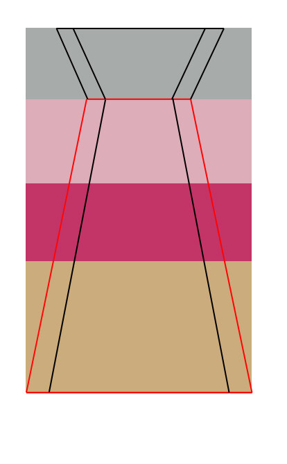 Итак, создав трапецию делим ее горизонтальными направляющими на четыре части и сразу отграничиваем будущие боковые стенки носа (синие линии).